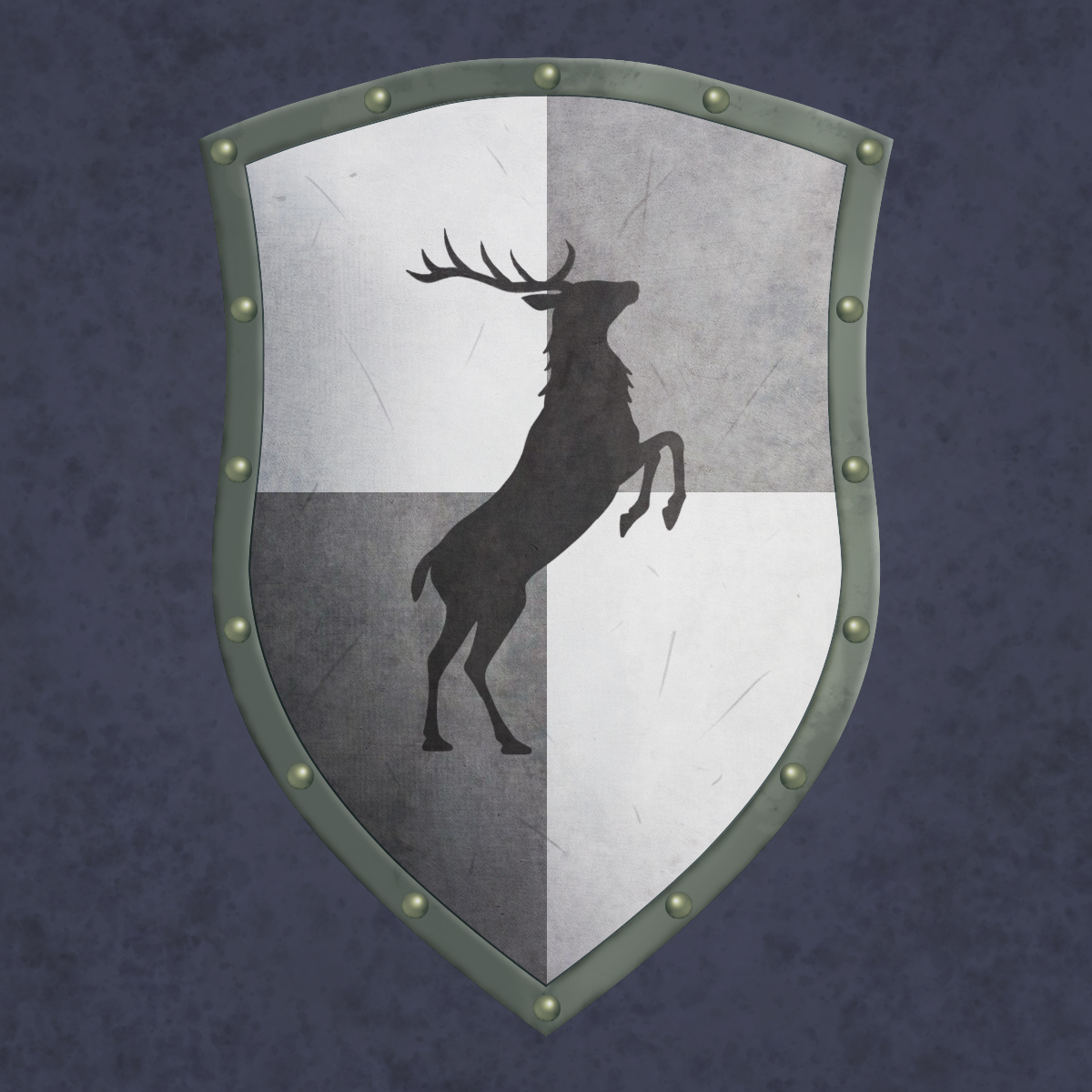 black silhouette of a stag on a gray and white checkered field: this is an emblem recognized by all peoples. It grants unrestricted journey through any of the cities and kingdoms of the five nations. Those who bear this emblem on shield or cloak are above the laws of royalty, and only answer to the Council of the Five Nations.